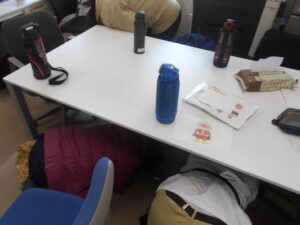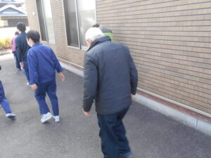 本日午前に、シェイクアウト愛媛の地震発生した際の訓練を実施しました。机の下に頭を抱えてしっかりと頭を守る行動をとられています。その後、火災が発生した想定で敷地内の駐車場へ皆さんで避難を行いました。皆さん真剣な様子で取り組まれていました。