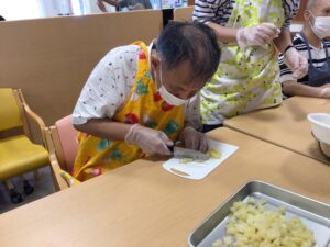 さらに、桃を包丁でカットします。