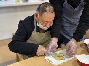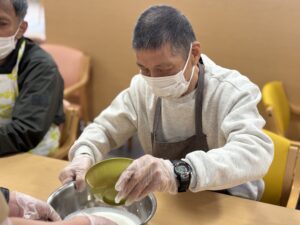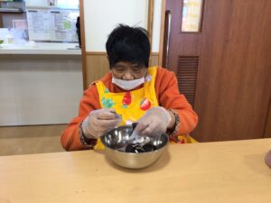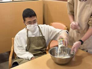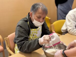 ホイップクリームに砂糖を入れて、ハンドミキサーでよく混ぜます。