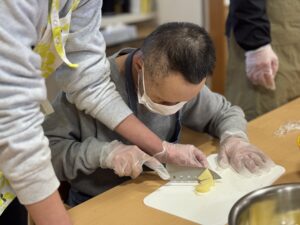 まずはじめに、りんごを小さくカットします。