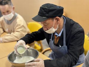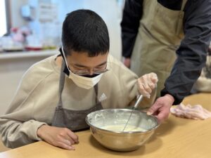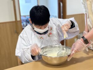 ホットケーキミックスを加え、さらに混ぜます。